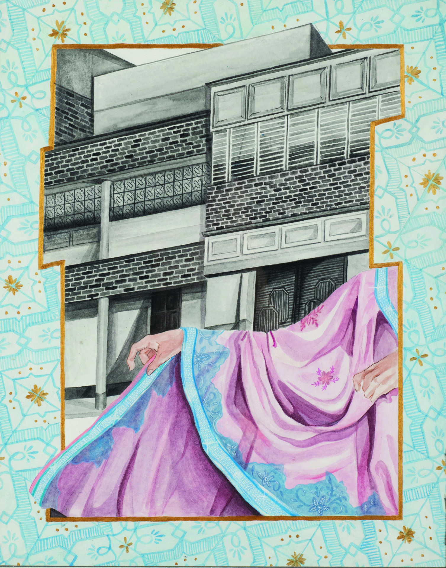 Acrylic and colored pencil on canvas