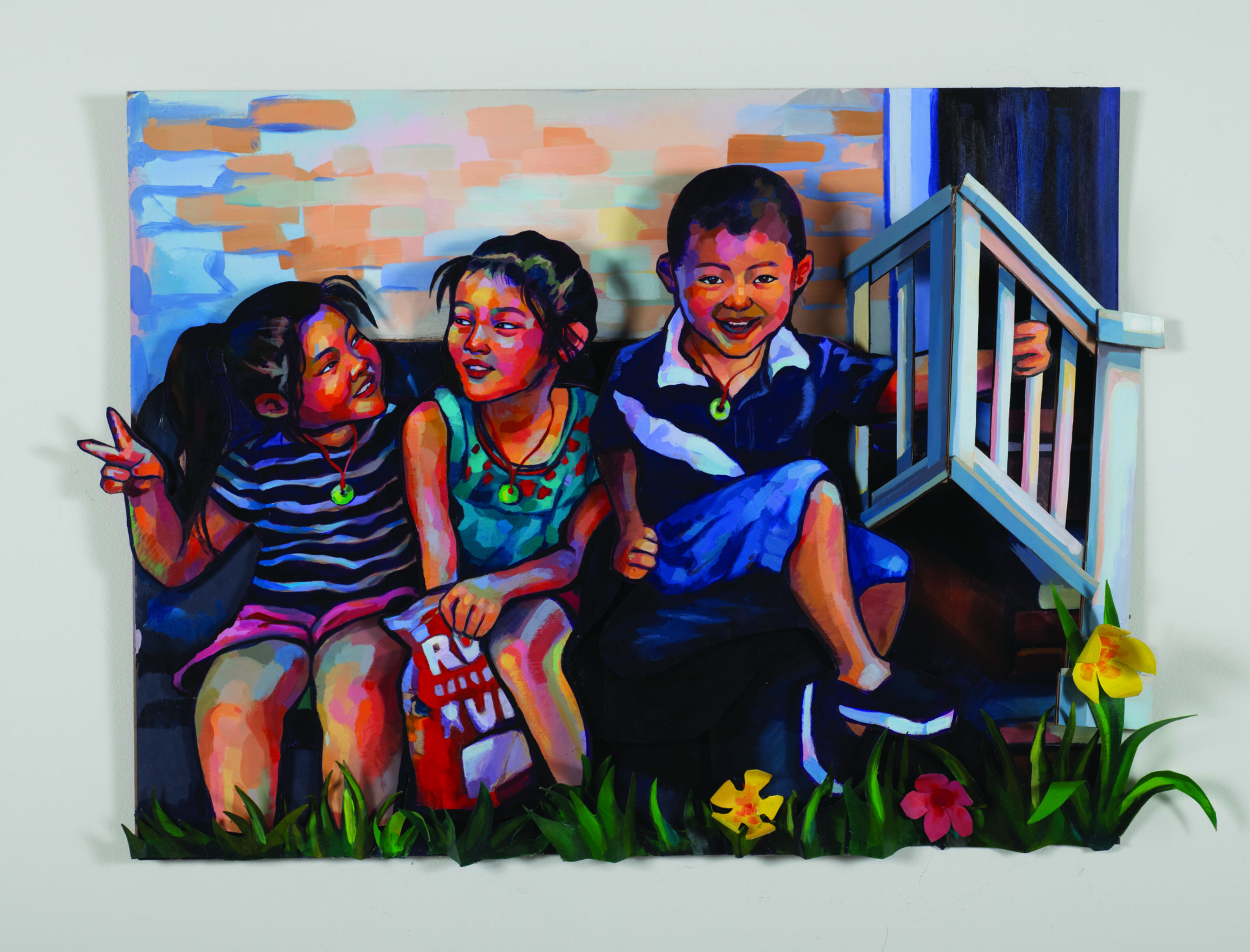Acrylic on cardboard with sculpt medium