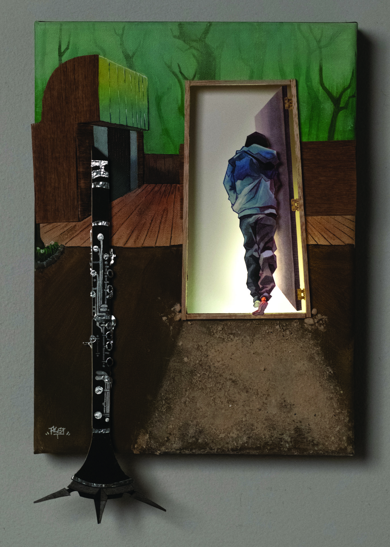 Mixed media (Acrylic on canvas, magnetic board, clay)